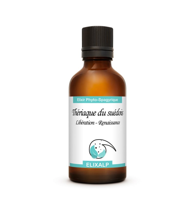 Elixir de la Tradition aux grands pouvoirs dépurants et curatifs, l’Elixir spagyrique aux herbes du Suédois est une liqueur obtenue à partir d’une Thériaque la plus proche de la formule originelle et qui contient près de 75 composants. Notre Thériaque est 100% végétale et est élaborée selon une grande rigueur énergétique. Nous utilisons l’HYDROMEL pour la macération de la Thériaque, ce qui lui donne une composante énergétique supérieure aux thériaques habituelles.